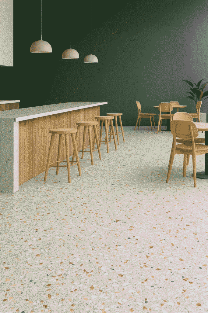 Bugünkü terrazzo, geçmişte kullanılanlara göre çok daha canlı renklerle mimarların tasarımlarını zeminlere yansıtabilir, uzun ömrü ve düşük bakım maliyetiyle de operasyonel avantajı birleştiren bir yapıdadır.